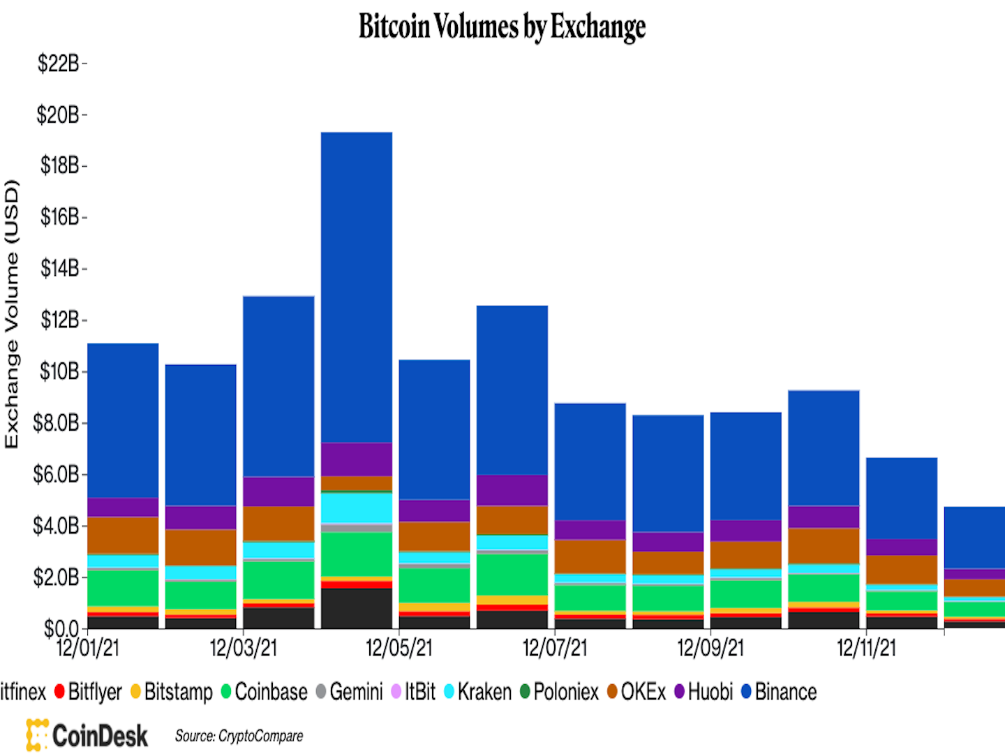 On Sunday, bitcoin recovered it's $50K price level before dropping back below that number. The world's largest cryptocurrency is up from recent lows, but still down more than 25% from all-time highs reached in early November. Prices for other cryptocurrencies including ether rose on Sunday, before dropping later in the day, tracking a similar path as bitcoin. Trading volumes on centralized exchanges hovered around monthly lows, potentially indicating that any price recovery may be unsustainable.